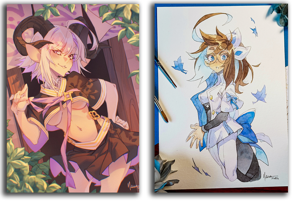 ⋄ Les commissions sont réalisées dans mon style, je n'imite pas le style d'un autre artiste ou d'une licence.⋄ Je dessine vos personnages avec plaisir. J'accepte aussi les demandes issues de licences tant que je les dessine dans mon style.⋄ Les dessins à caractère pornographique, gore ou violent seront refusés. Les nus artistiques sont acceptés.⋄ Je me réserve le droit de refuser une commission, notamment si l'univers n'est pas dans mes centres d'intérêt et ce afin de vous assurer une illustration de qualité.